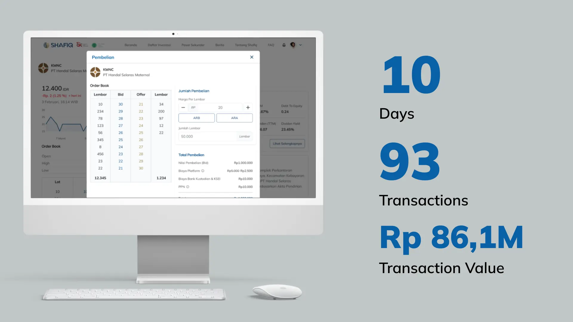 This project originated from my current full-time workplace, where SHAFIQ, a crowdfunding service provider that issues shares, sought to implement a secondary market program. Since its establishment in 2020, SHAFIQ had not yet introduced a secondary market. Consequently, developing this new feature required a learning process for me to understand the schemes and workflows from both business and user perspectives. The design process started from scratch, covering both user and admin dashboard interfaces.